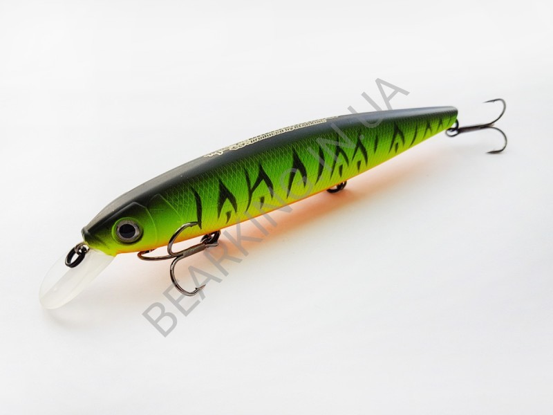 Bearking Balisong 130SP цвет D Mat Tiger прекрасно работает весь сезон открытой воды и ловит хищную рыбу там, где японская приманка бы и не побывала из-за боязни получить мертвый зацеп.