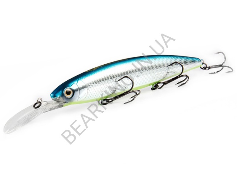 Bearking Balisong Longbill 130SF цвет C Green Belly прекрасно работает весь сезон открытой воды и ловит хищную рыбу там, где японская приманка бы и не побывала из-за боязни получить мертвый зацеп.