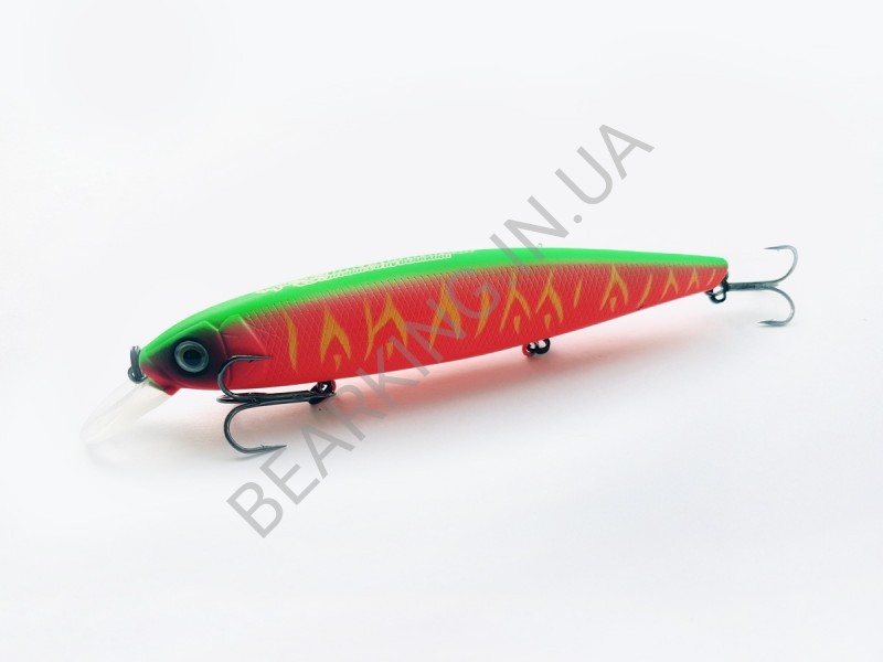 Bearking Deps Balisong 130SP K Fruit Tiger прекрасно работает весь сезон открытой воды и ловит хищную рыбу там, где японская приманка бы и не побывала из-за боязни получить мертвый зацеп.