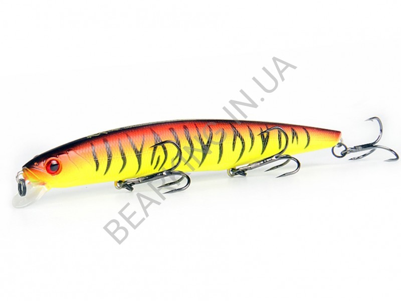 Bearking JungleCat 140SP цвет F Fire Tiger прекрасно работает весь сезон открытой воды и ловит хищную рыбу там, где японская приманка бы и не побывала из-за боязни получить мертвый зацеп.