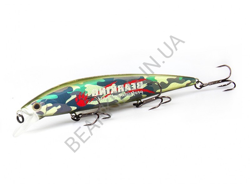 Bearking Rerange 130SP цвет M Green Camo прекрасно работает весь сезон открытой воды и ловит хищную рыбу там, где японская приманка бы и не побывала из-за боязни получить мертвый зацеп.