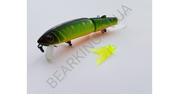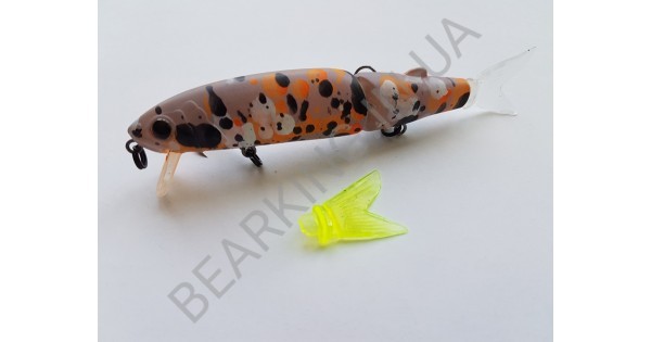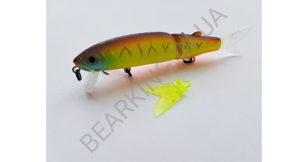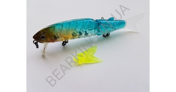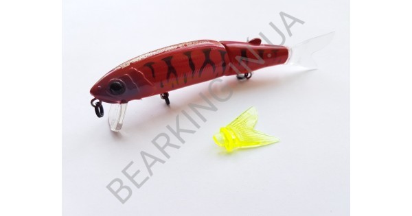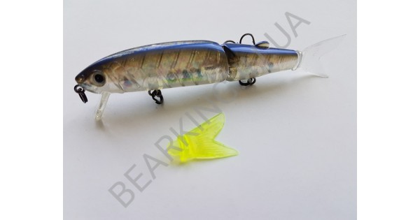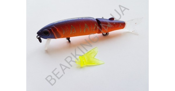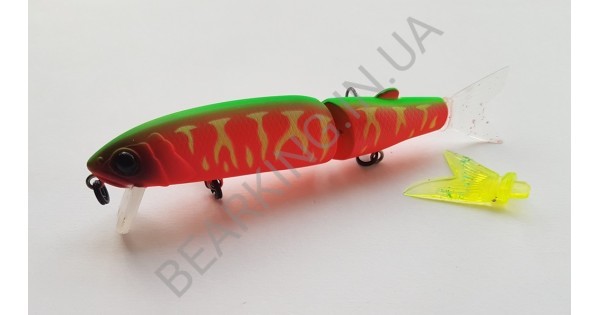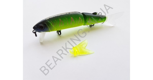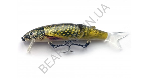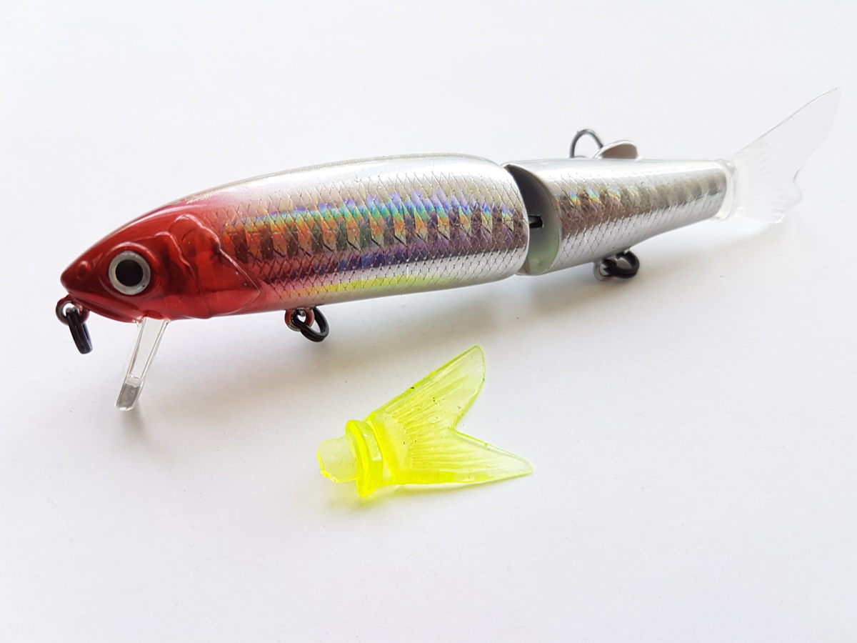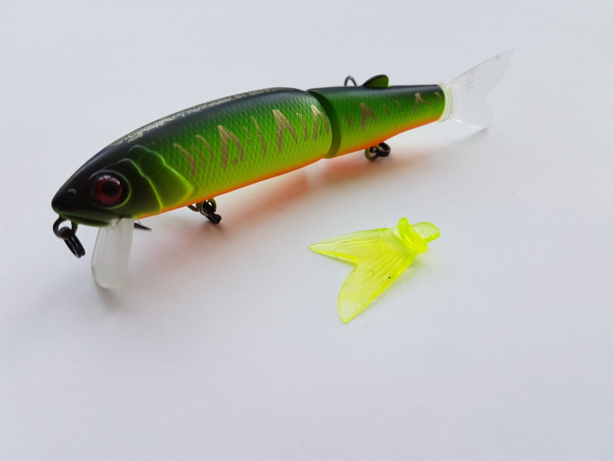 Конструкция копии Magallon 113F состоит из 2-х частей и имеет эффектный дизайн. На конце приманки находится эластичный, но устойчивый к зубам хищника хвостик. Его присутствие во время проводки способствует формированию дополнительных движений, побуждающих к атаке пассивную щуку и судака. Примечательно, что, совершая твичинг с малой амплитудой, можно совершать репликой размашистые «слайды», а также кульбиты, равно как и другие движения, которые по достоинству будут оценены хищником, не планирующим охоту.