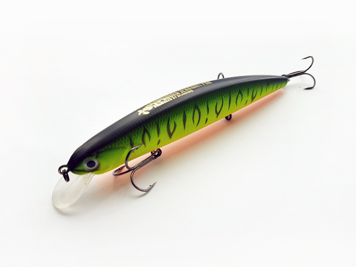Торговая марка Bearking приложила максимум усилий, чтобы созданная ею реплика по основным параметрам соответствовала оригиналу от Ташинари Намики. Масса воблера составляет 21 грамм, а длина тела 130 мм. В конструкции предусмотрена система дальнего заброса, реализованная с помощью специальных грузиков, перемещающихся по внутреннему каналу. Наличие лопасти позволяет заглубить приманку на 1.2 – 1.8 м, тогда как трое острых тройных крючков, сводят к минимуму риск схода хищника. С такими возможностями и невероятно доступной цене, Bearking Rudra 130SP станет настоящим бриллиантам в арсенале современного спиннингиста.